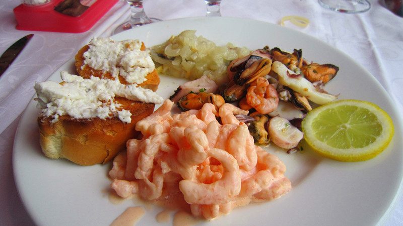 海鮮綜合盤裡有著蝦仁.蚵仔及麵包等...不過食材上並不算很新鮮